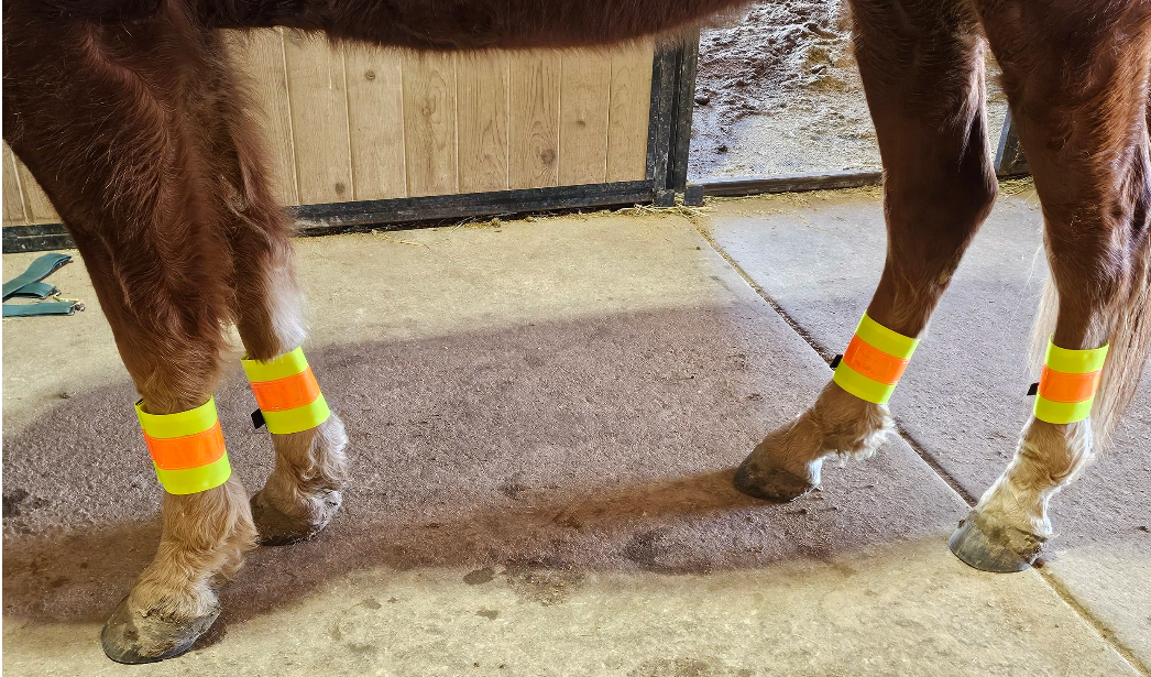 High Visibility Horse and Rider Wear enhances trail horse safety by enabling trail users and road vehicles to see you and your horse from a distance day or night. Reflective rider vests, breast collars, rump wraps, leg wraps, neck collars, carriage and cart banners provide provide additional visibility for drivers, hunters and horse camping.
